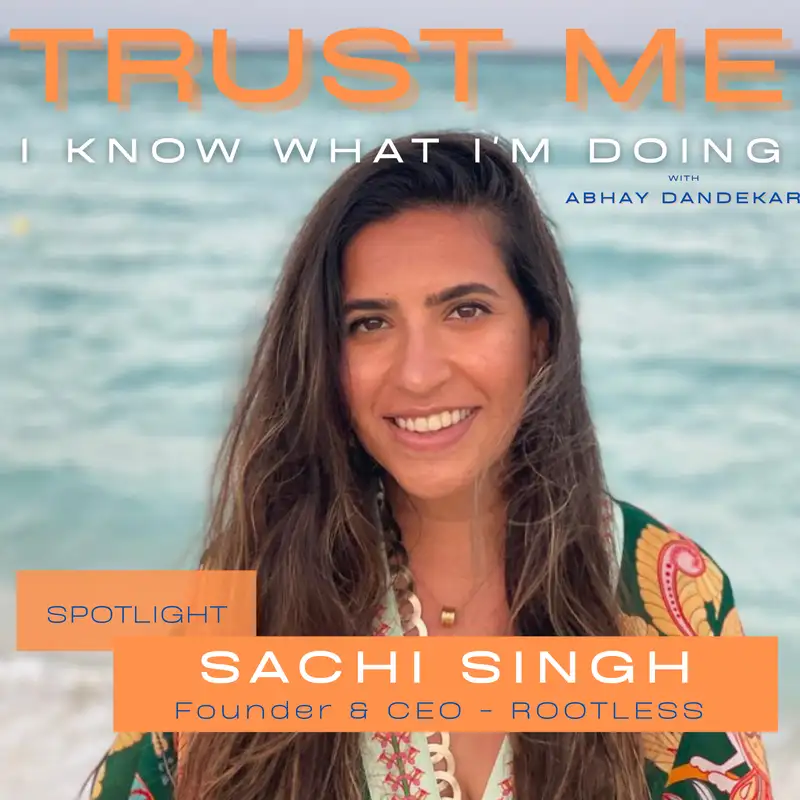 SPOTLIGHT episodes of TRUST ME I KNOW WHAT I'm DOING feature brief chats about a unique topic or cause.Sachi Singh is the CEO and founder of ROOTLESS. Sachi brings her...